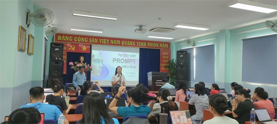 Trong hai ngày 06 và 07 tháng 8 năm 2025, Trường Tiểu học Kết Đoàn tổ chức chuyên đề bồi dưỡng với chủ đề “Ứng dụng trí tuệ nhân tạo (AI) trong dạy học và kiểm tra đánh giá” dành cho toàn thể cán bộ, giáo viên của nhà trường.